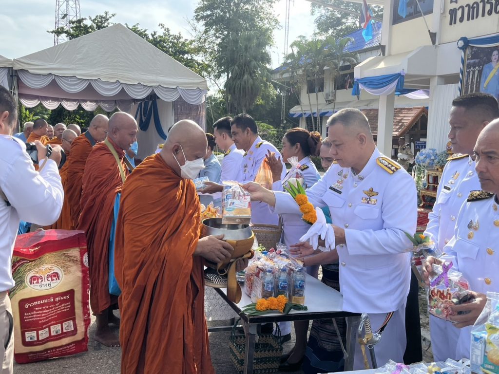 4.การปฏิบัติ : ร่วมพิธีทำบุญตักบาตรถวายพระราชกุศล ร่วมกับหน่วยงานภาครัฐ และภาคเอกชน - ผลการปฏิบัติ : เป็นไปด้วยความเรียบร้อย